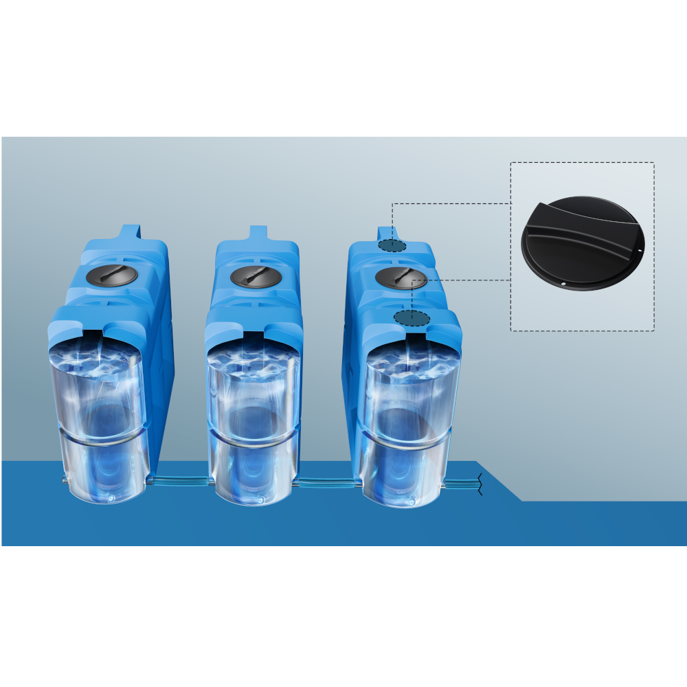 Disse smalle tanke passer gennem en standard døråbning. De fylder lidt i et rum og er nemme at transportere. Hullet i midten gør det nemt at fastgøre tanken og fungerer også som en væske-bryder, således at vandets bevægelse i tanken mindskes.