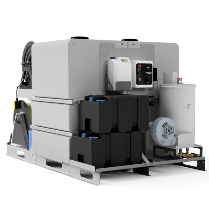 Velegnet til algebehandling af tage, fliserens, grafittirens samt diverse nedvaskningsopgaver. Mange detaljer er tænkt ind i systemet, som er komplet med elektriske slangehjul til både højtryksrens og vinduesvask. Har du brug for varmt vand kan en Purewash Hotbox let tilsluttes.